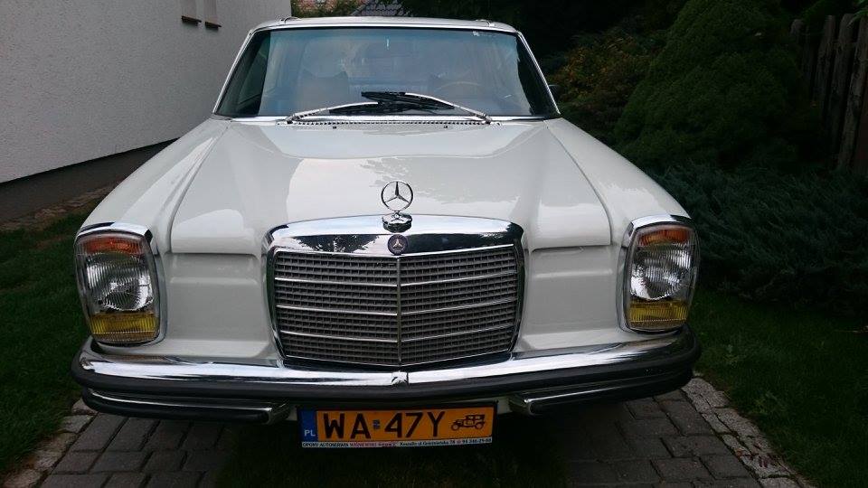 Powyżej napisałem, że w czasach produkcji był drogim autem. Głównie tyczyło się to topowej wersji 280. Diesel był względnie tani. Po zakończeniu produkcji auto było dostępne niemal dla każdego. Stąd również ich duża ilość w Polsce, już w latach 80. Niezniszczalny Mercedes szybko zyskał w oczach taksówkarzy oraz innych osób, które potrzebowały woła roboczego. Oczywiście tutaj mowa głównie o modelu W115 w którym montowano niezniszczalne silniki diesla – 200, 220, 240. Wszystkim towarzyszyła literka D. W114 to już te „topowe” modele z silnikami benzynowymi oraz wersje dwudrzwiowe. Kiedy rozpoczęto produkcje dodano do nazewnictwa /8. Skąd to się wzięło? Modele 220D, 240D itd. nakładały się na inne auta marki. Zdecydowano o dodaniu symbolu dla rozróżnienia aut w ofercie. 8 wzięła się z roku produkcji – 1968, a właściwie z rozpoczęcia, ponieważ dalsze roczniki miały to samo oznaczenie. Z tego powodu w Niemczech, auto jest znane również jako „Stricht Acht”
